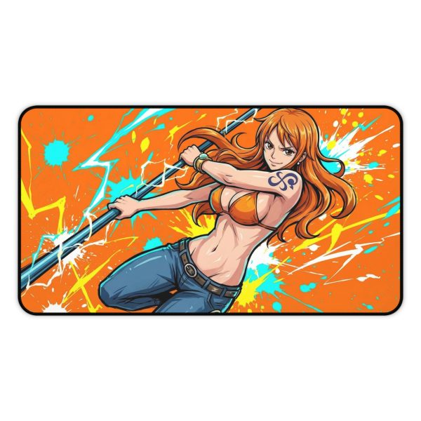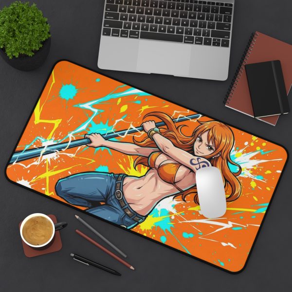 Anime Nami Desk Mat — Vibrant Orange Pirate Girl Mouse Pad for Gamers & Fans
