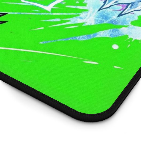 Bring bold energy to your workspace with this neoprene desk mat. The vivid, high-contrast artwork pops against the matte surface, turning your desk into a scene from a favorite adventure or anime marathon. Thick neoprene and a non-slip backing hold the mat steady through typing, sketching, or frantic game sessions. Hemmed edges resist fraying so the colors and crisp print stay sharp over time. Choose from three sizes to anchor a laptop, full keyboard, or an expansive dual-monitor setup — a practical splash of personality that invites creativity and focus.