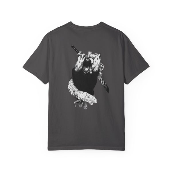 This relaxed-fit T-shirt feels like something worn-in and trusted from the first wear. The heavyweight, garment-dyed cotton softens with time while keeping structure—so the bold black back print stays striking against the lived-in texture. Imagine slipping it on for a late-night gig, a city wander, or a studio session: the shirt carries both edge and comfort. The graphic—an intense, hand-rendered hand gripping a knife wrapped in cloth—speaks to people who favor raw, illustrative art and apparel that tells a story without shouting. Offered in many colors and sizes, it settles into your rotation and becomes that shirt you reach for when mood matters more than trends.