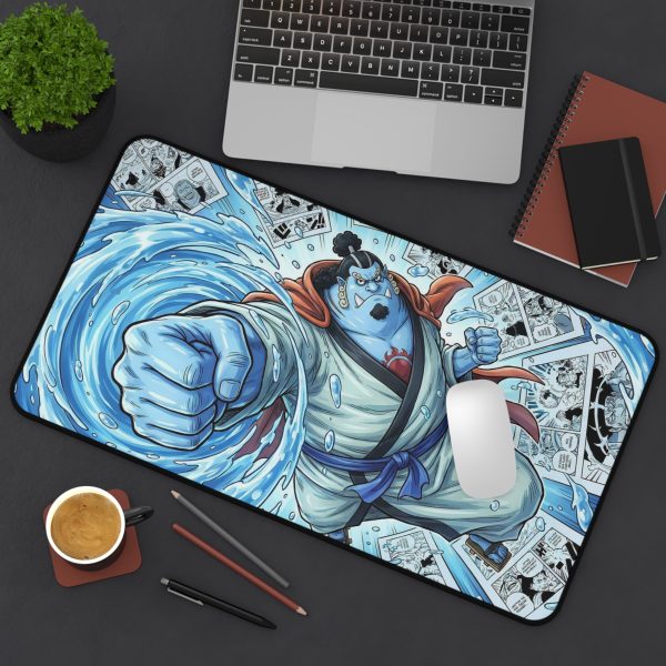 A bold, illustrated desk mat that brings high-energy anime action to your workspace. The artwork captures a dynamic water-powered guardian mid-strike, rendered in vibrant blues and crisp linework that pop against the mat’s matte surface. The neoprene base stays firmly in place while you type, draw, or game, and the carefully hemmed edges keep the print looking sharp through heavy use. Available in three sizes to fit compact desks or full gaming setups, this mat doubles as a smooth writing surface and a protective layer for keyboards and tablets. It’s designed for fans who want their desk to feel like a scene from their favorite manga — loud, lively, and ready for action.